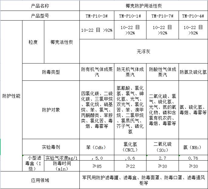 椰殼防護(hù)活性炭技術(shù)指標(biāo)應(yīng)符合下表要求: