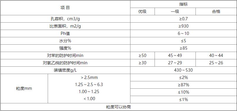 煤質(zhì)柱狀防護(hù)活性炭技術(shù)指標(biāo)應(yīng)符合下表要求