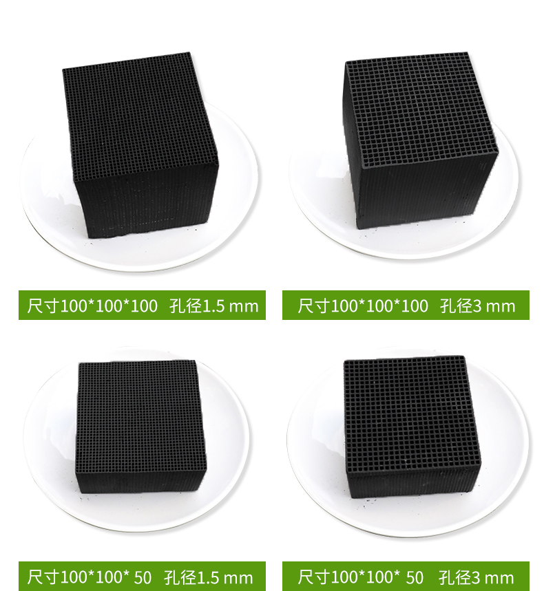 5、通常的蜂窩結(jié)構(gòu)活性炭主要有圓柱形、橢圓柱形和長方體三種外形,它們含有正方形、圓形、六邊形和三角形的通道,具有較大的比表面積和豐富的微孔結(jié)構(gòu)。