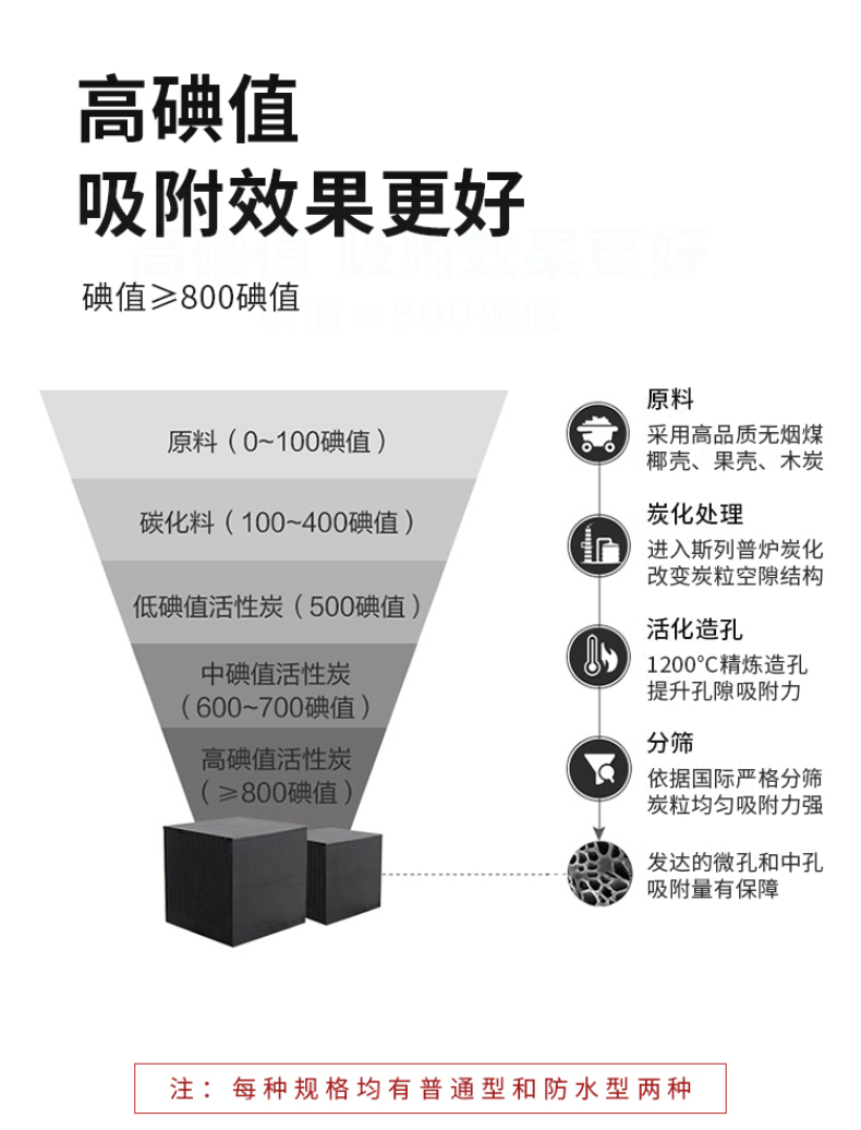 3、活化劑種類的影響:蜂窩活性炭有多種添加劑,粘合劑、吸附助劑、活化劑和耐水材料等,即便在同問下,不同種類和數(shù)量的活化劑反應(yīng)速度就不同,反應(yīng)溫度和反應(yīng)時間會有差別,很難確定具體時間,由此燒制的蜂窩活性炭碘值就有區(qū)別。