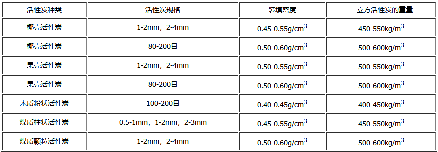 下表是竹之韻活性炭廠家根據(jù)我公司產(chǎn)品的實際情況,為大家總結幾種不同類型活性炭產(chǎn)品的裝填密度,以及不同規(guī)格、種類活性炭一立方的重量,希望對大家有所幫助。