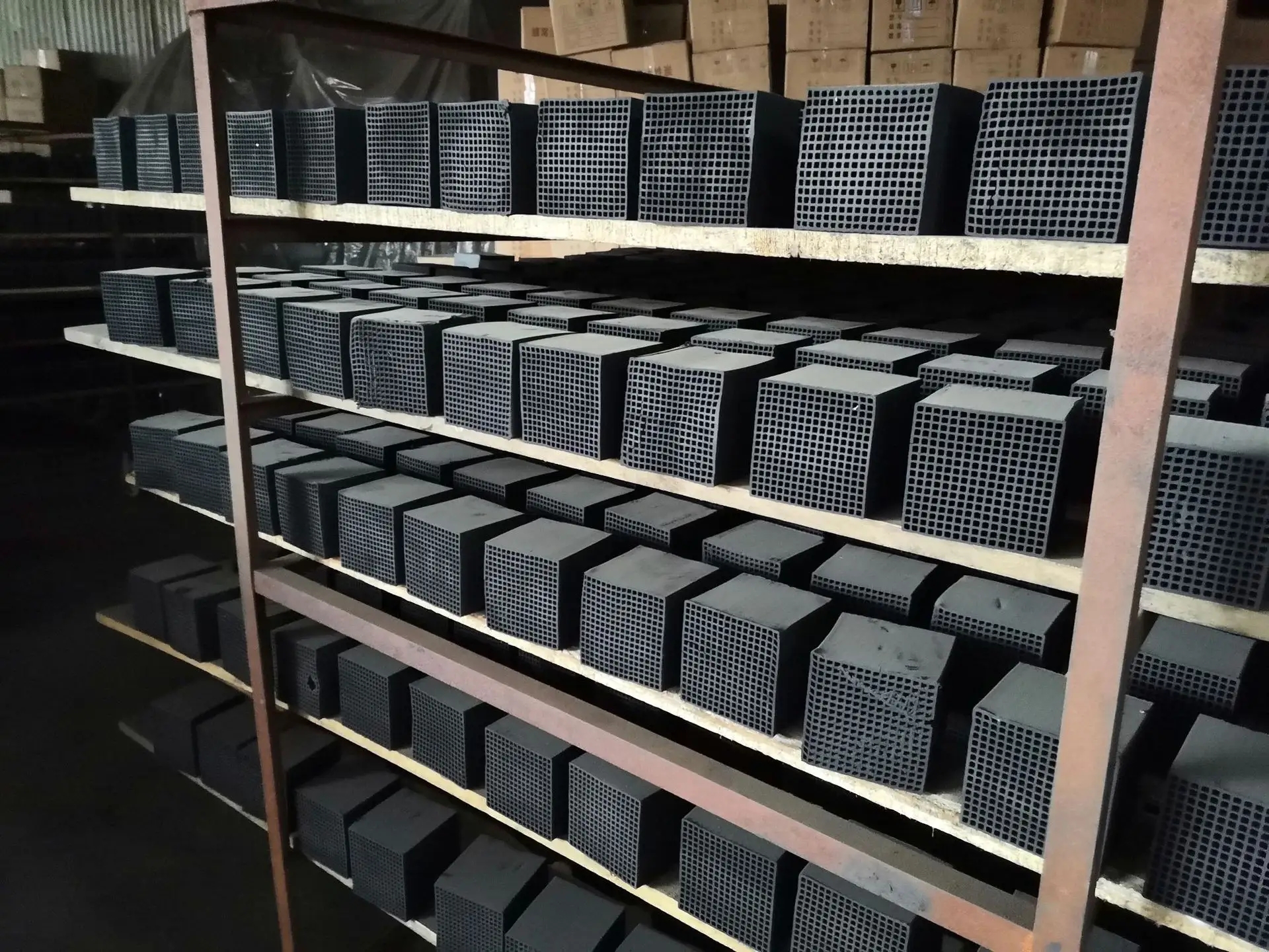 蜂窩活性炭是將一定細(xì)度的炭粉,添加助劑(黏結(jié)劑和潤滑劑)經(jīng)混煉成形,高溫固化而成。助劑、固化對活性炭都有影響。將催化劑如某些金屬負(fù)載在蜂窩狀活性炭上,便可以制成蜂窩活性炭基催化劑。按照負(fù)載方法和過程的不同,可將制備方法分為聚合涂炭法、混合擠壓法、浸漬沉積法、離子交換法、沉積析出法五大類。蜂窩活性炭吸附性能好,幾何表面積大,具有優(yōu)越的動力學(xué)性能和高的化學(xué)穩(wěn)定性。