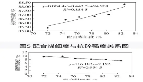 配合煤細(xì)度對(duì)配合煤堆密度、焦炭機(jī)械強(qiáng)度、熱強(qiáng)度及焦炭產(chǎn)量的影響, 用來指導(dǎo)實(shí)際生產(chǎn);在一定條件下, 按照實(shí)際使用的配比, 進(jìn)行不同細(xì)度下配合煤, 尋找配合煤細(xì)度與焦炭質(zhì)量、產(chǎn)量的對(duì)應(yīng)關(guān)系。