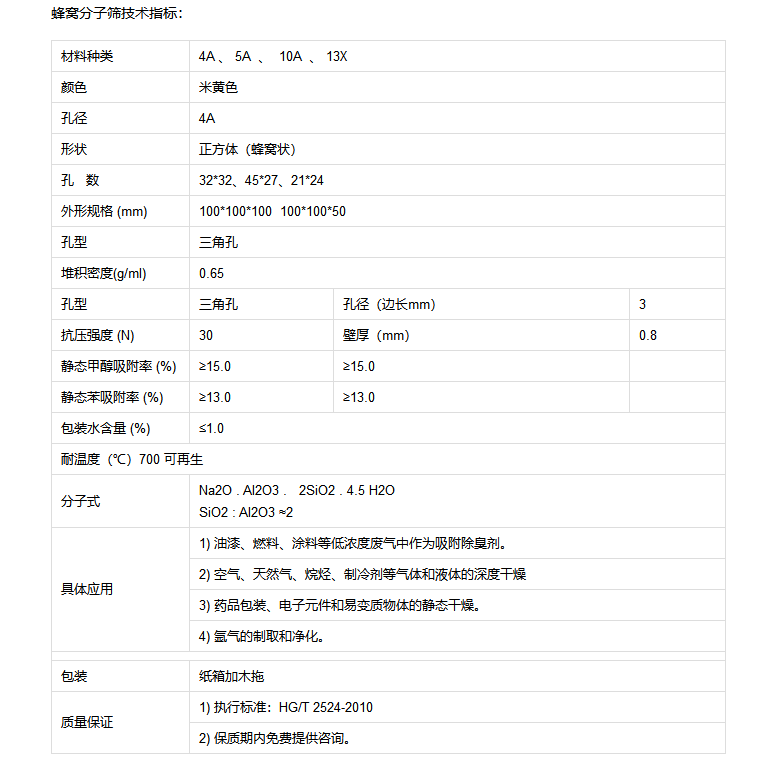 蜂窩分子篩是一種吸附性能好、無二次污染、可高溫再生的高效分子篩載體,。本公司蜂窩沸石分子篩具有以下優(yōu)點: