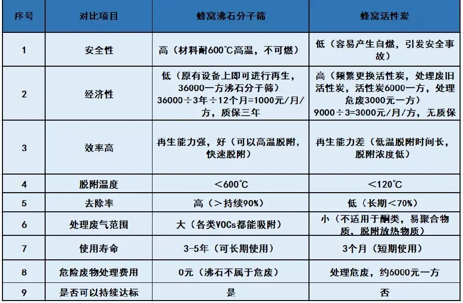 目前,活性炭是最常用的VOCs吸附劑,但存在再生困難、抗?jié)裥圆?、易燃等諸多問題。與活性炭等常規(guī)吸附劑相比,沸石分子篩作為VOCs吸附劑其主要優(yōu)勢在于: